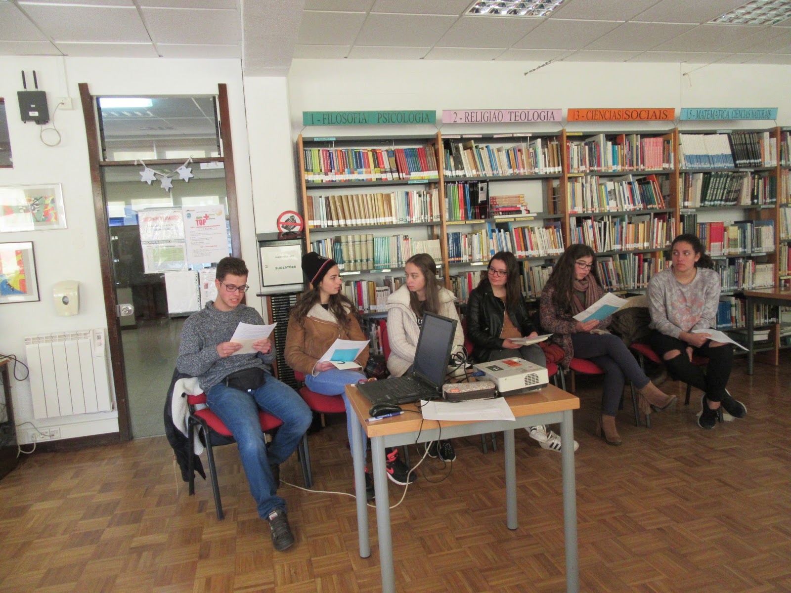 Às 5 em ponto, a sessão terminou, ficando os primeiros debuxos de cada projeto individual dispostos pelas mesas de trabalho, em modo “três pontos” (aproveitando aqui o valor expressivo das reticências), até à sessão da próxima semana, a fim de ser ponto assente que, no final, se há de desenhar no rosto de cada “empreendedor” do projeto Ler+ Jovem um ponto de exclamação.