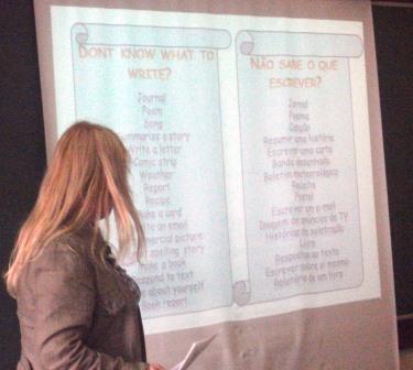 Julie Hodgson realizou ainda um workshop de escrita de histórias para alunos e professores com muitas ideias e boa disposição.